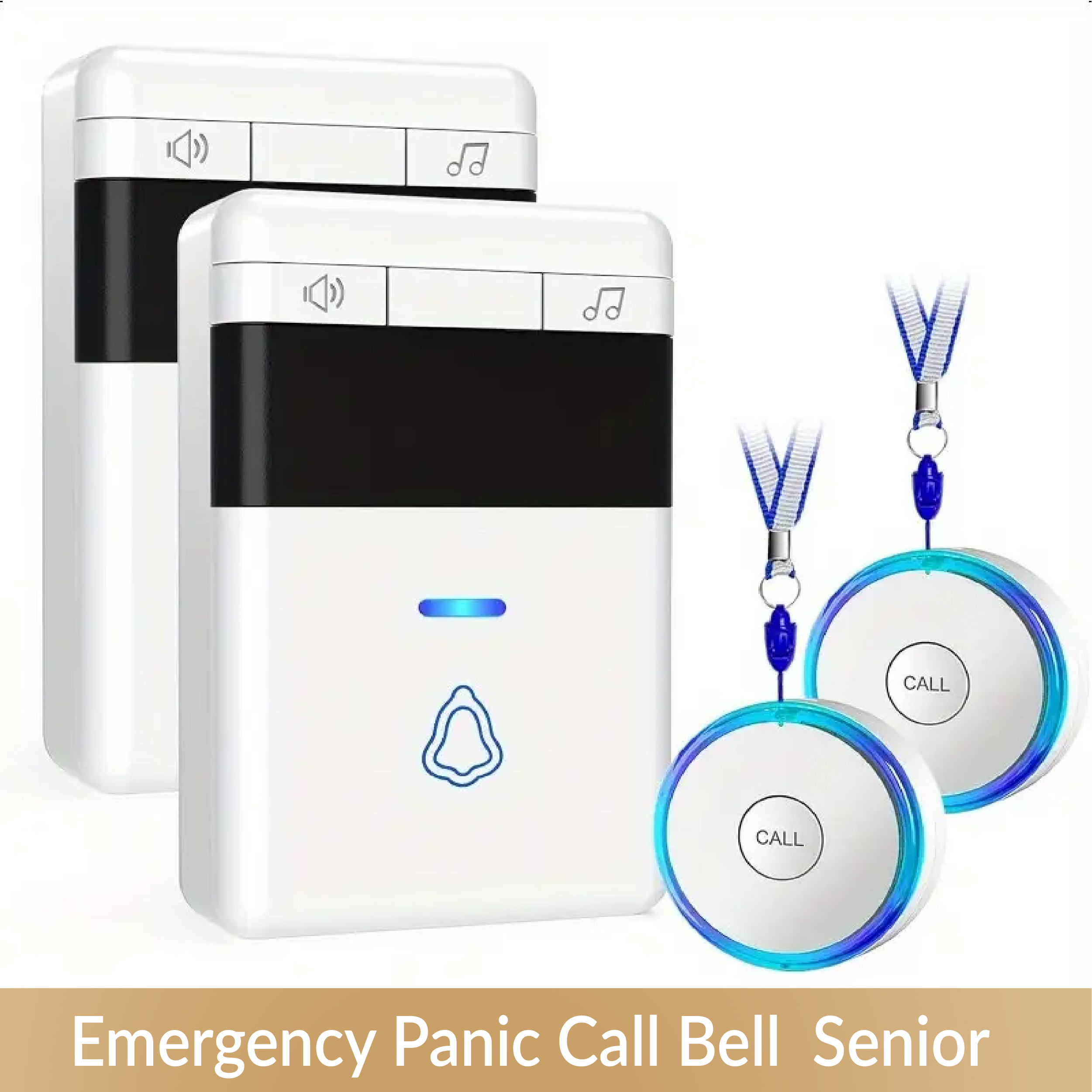 Emergency Panic Call Bell for safety and quick assistance. Made especially for elders and individuals with mobility challenges, featuring a loud alarm and LED flash for rapid alerts. The wireless, battery-powered design makes it easy to carry or install anywhere in the home.